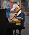 Person in wheel chair being carried by audience...